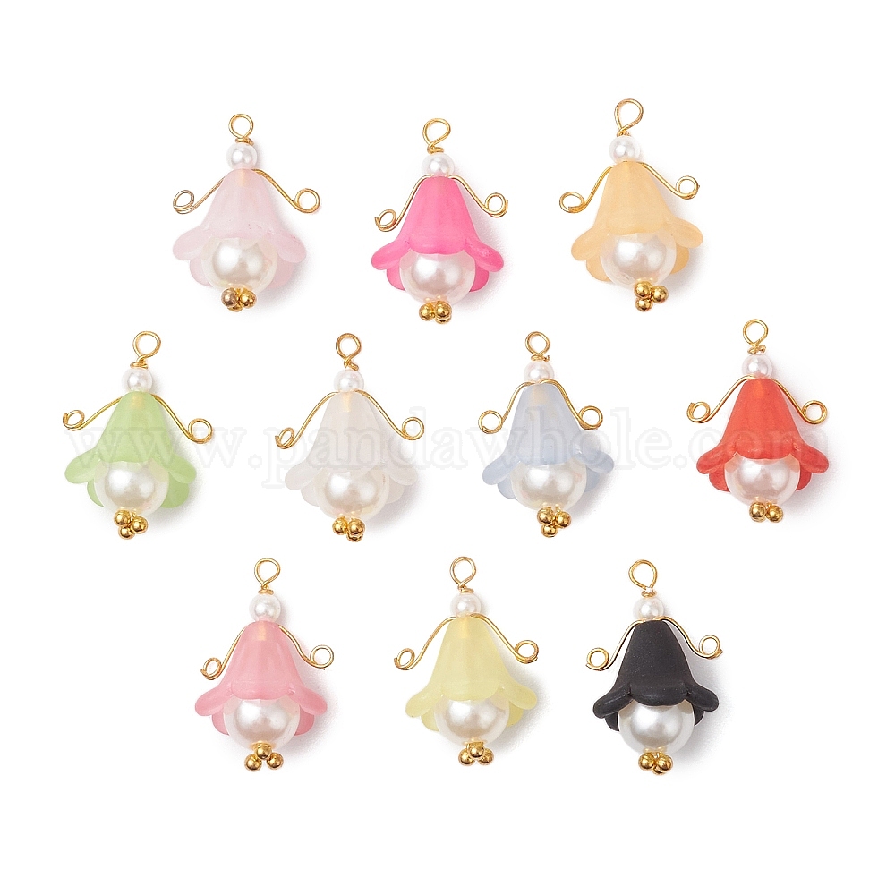 Подвески из акрила с золотой медной проволокой, с оболочкой жемчуг, цветок