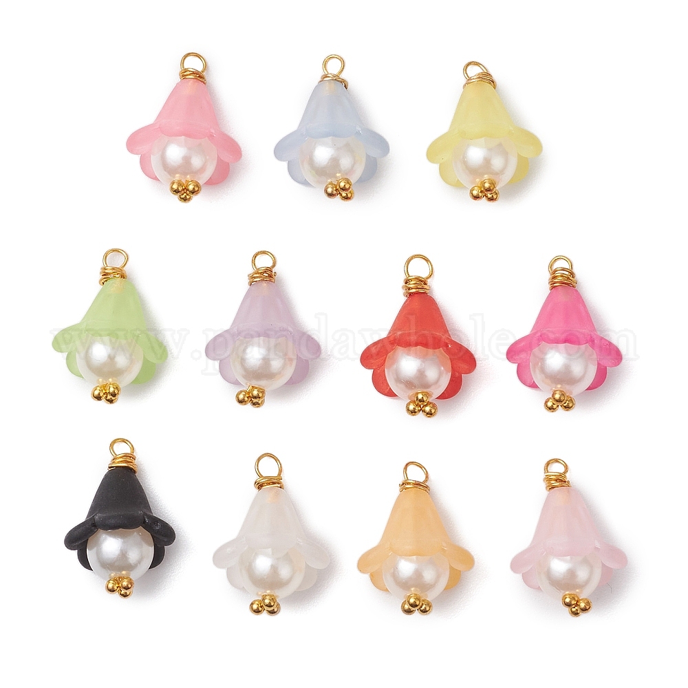 Подвески из акрила с золотой медной проволокой, с оболочкой жемчуг, цветок