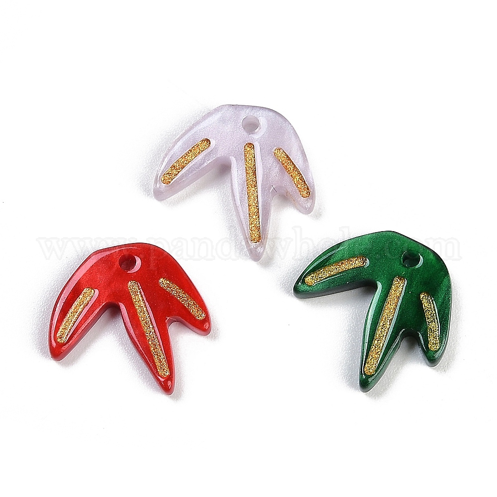 • Красный Акриловые подвески, с золотым металлом, инкрустированным, лист, красные, 14x14x2 мм, отверстие : 1.4 мм
