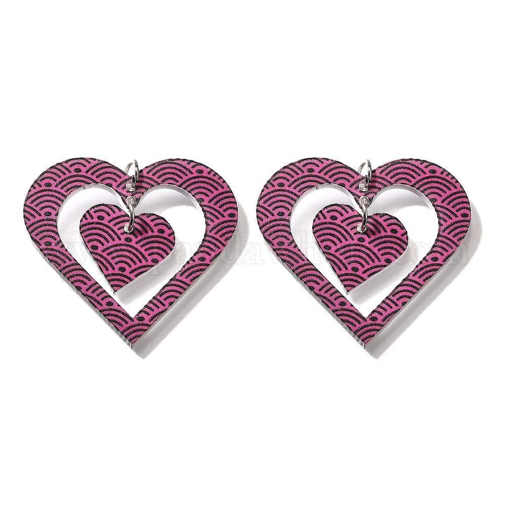 Печатные акриловые подвески, сердце, с платиновой петлей