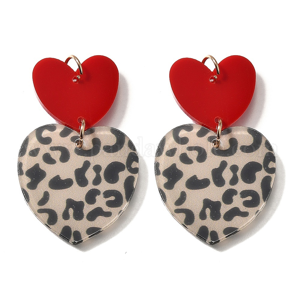 Печатные акриловые подвески, сердце с леопардовым рисунком, со светло-золотистой петлей