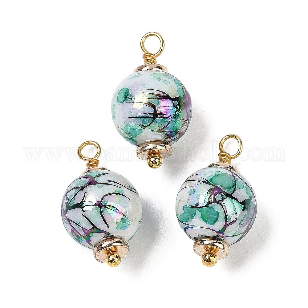 Подвески из непрозрачного акрила с печатью и УФ-покрытием, радужный, круглые, с петлей из латуни, покрытой настоящим золотом 18k