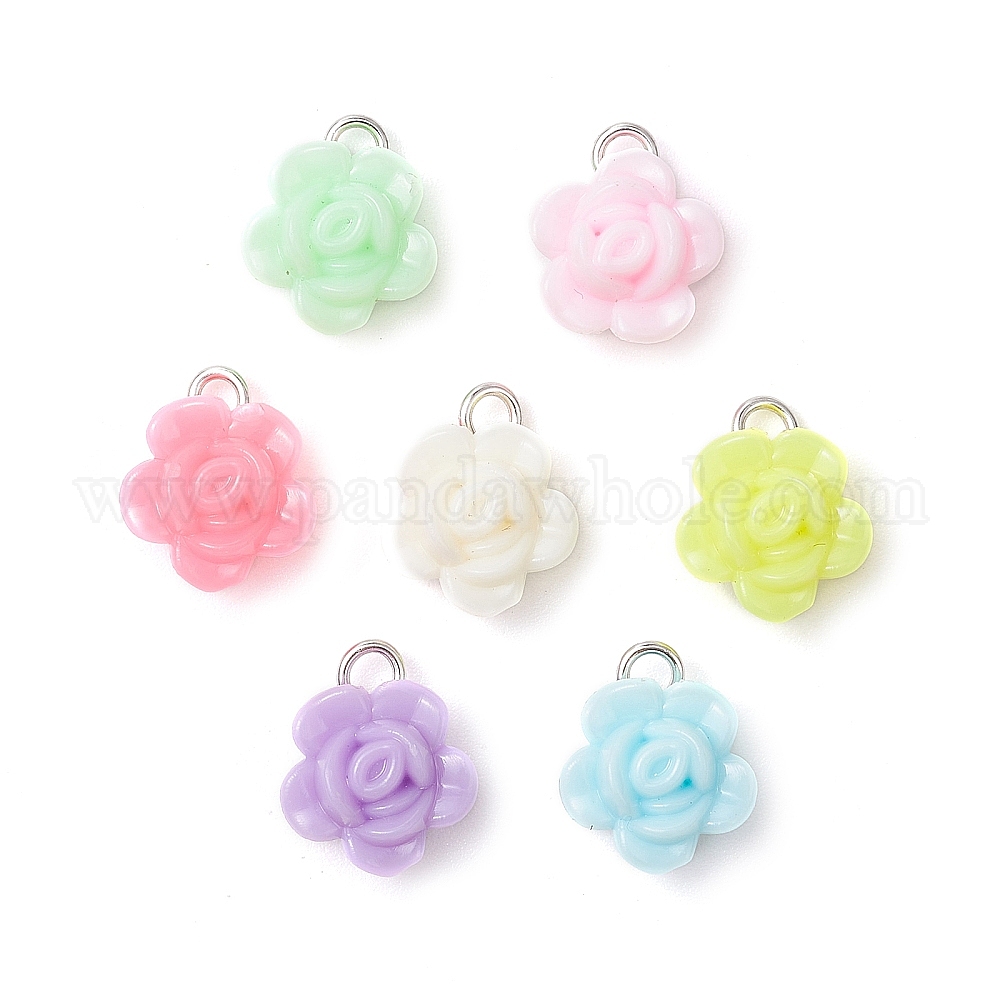 Непрозрачные акриловые подвески, цветок, с железными петлями
