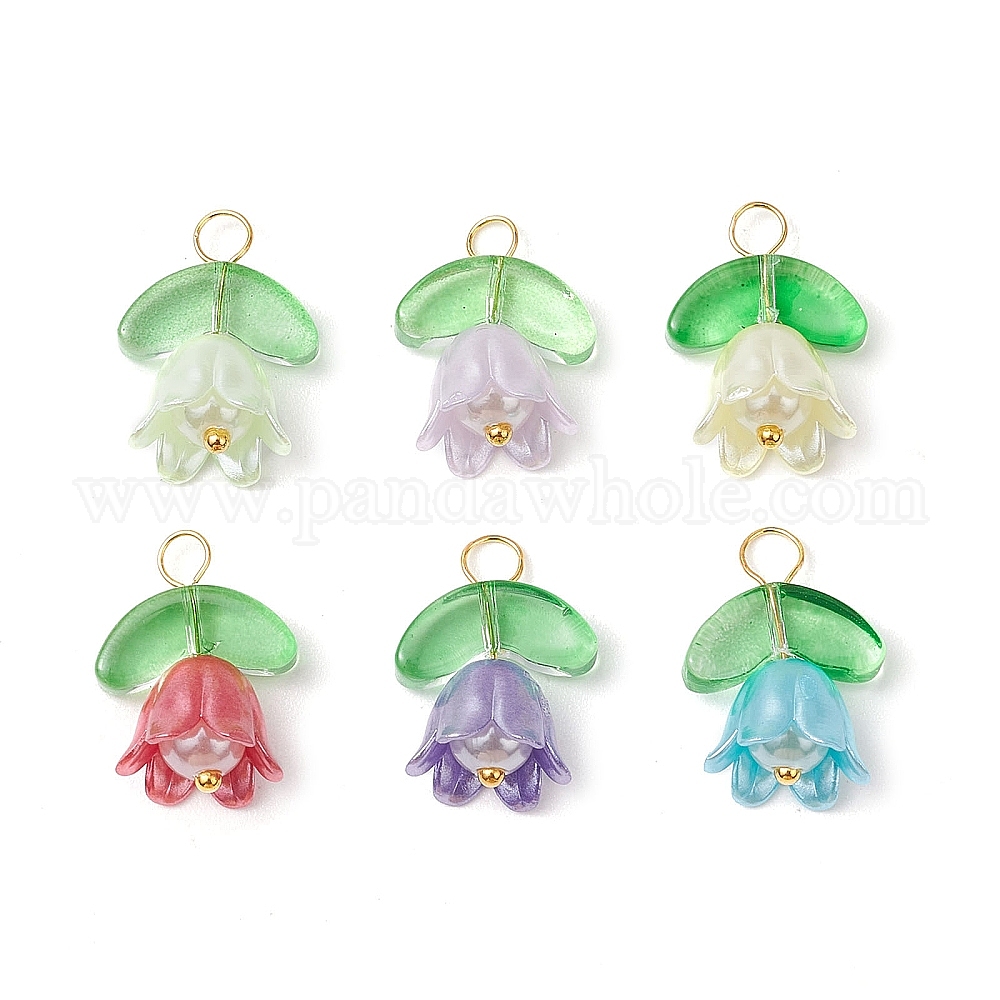 Имитация жемчуга акриловыми подвесками, лилия, со стеклянным листом и золотыми латунными петлями