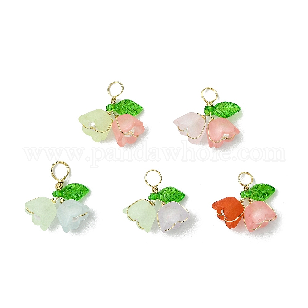 Двухцветные акриловые подвески, цветок, матовые, с имитацией жемчуга из АБС-пластика и медной проволокой