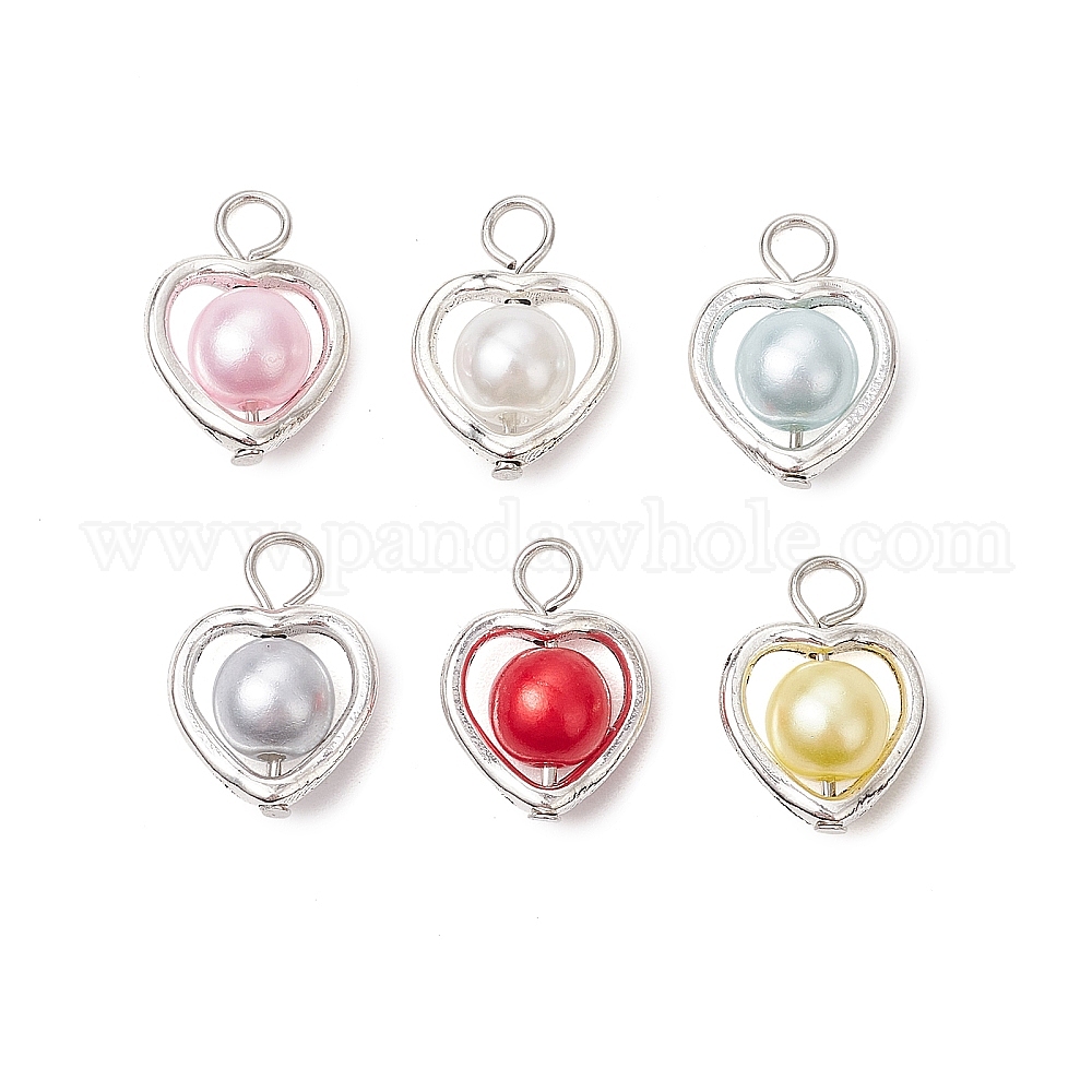 Подвески в виде акрилового жемчуга в форме сердца с соединительным элементом из сплава, античное серебро