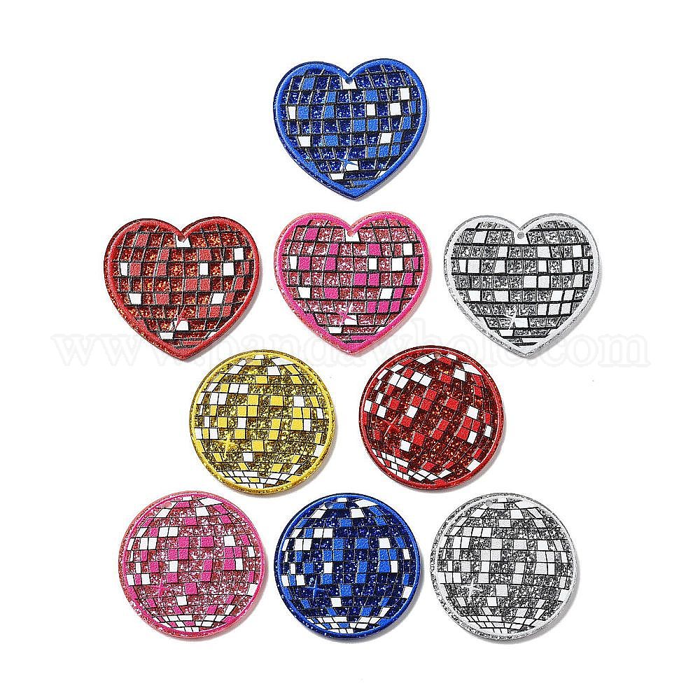 • Бледно-фиолетовый Красный Акриловые подвески, серия диско, бледно-фиолетовый красный, 34.5x37.5x2 мм, отверстие : 1.6 мм