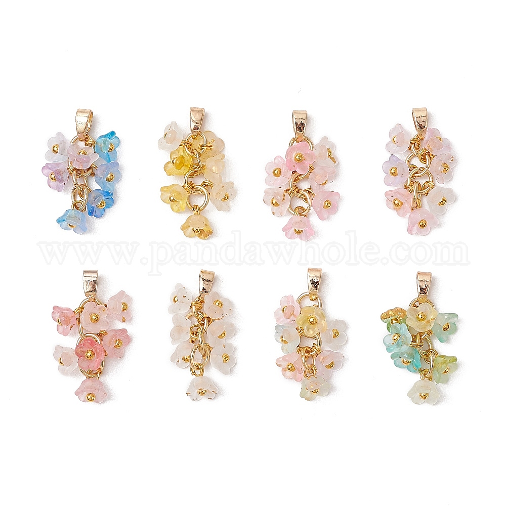 8шт. цветочные акриловые подвески, с латунной привязкой на поруки, матовые