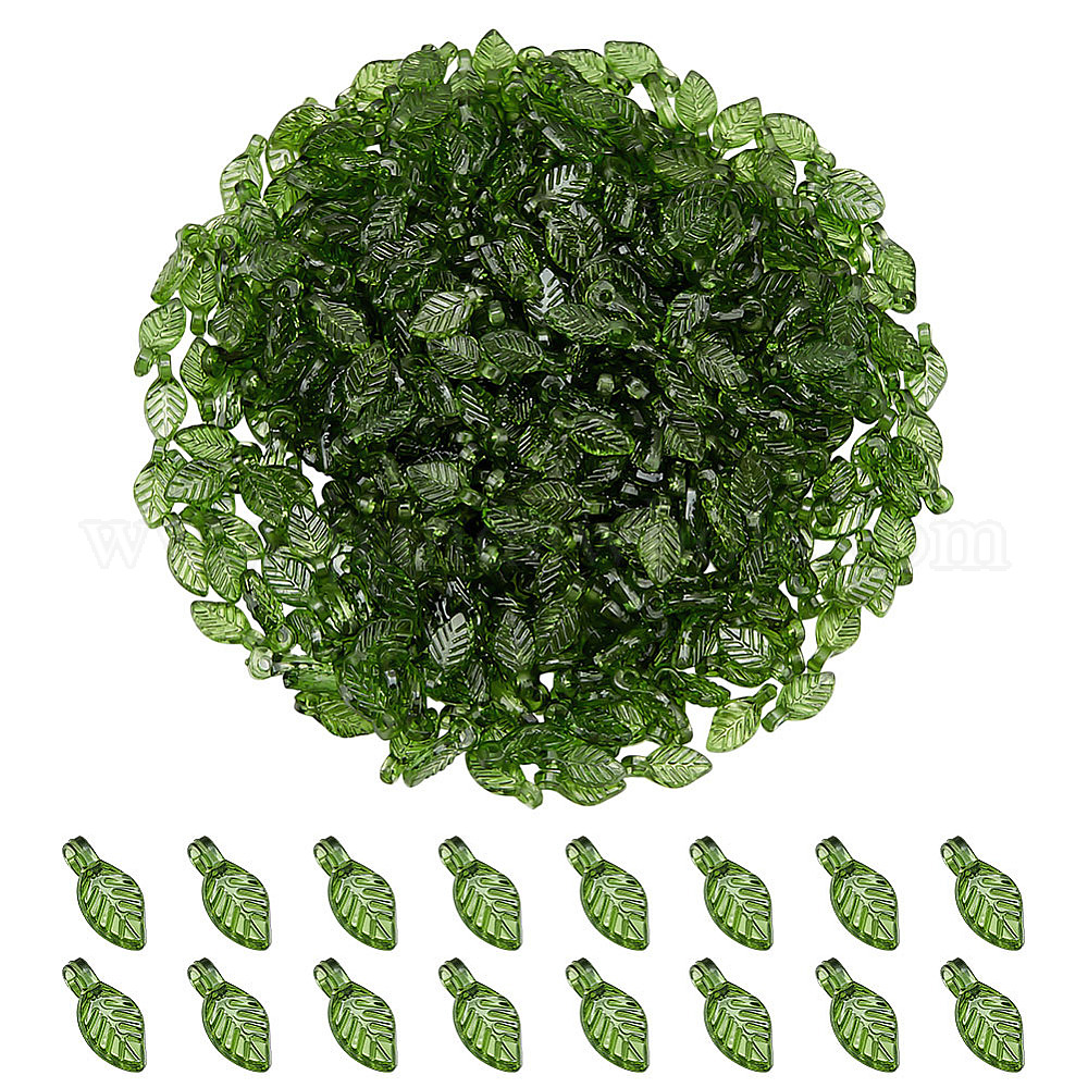 • Зеленый 500шт прозрачные акриловые подвески, лист прелести, зелёные, 10.5x5x3.5 мм, отверстие : 1.2 мм