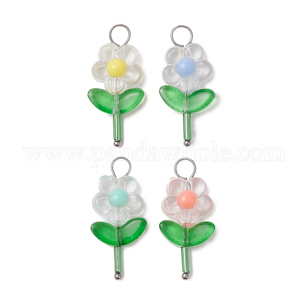 Прозрачные акриловые бусины с окрашенными распылением прозрачными стеклянными бусинами и стеклярусом, а также 304 подвески с шарообразными головками из нержавеющей стали, цветок