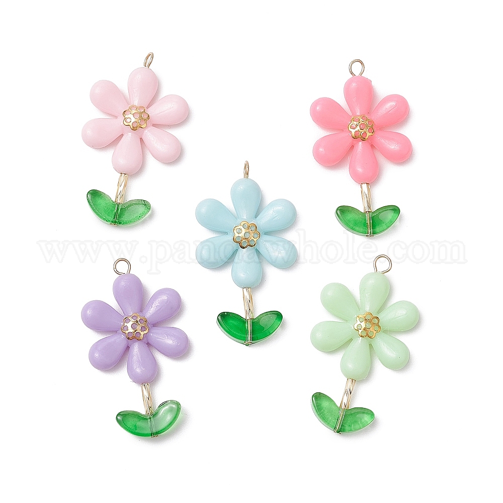 Непрозрачные акриловые цветочные бусины с железными колпачками и 304 штифтами из нержавеющей стали с плоской головкой и подвесками из прозрачных стеклянных бусин, окрашенных распылением, цветок
