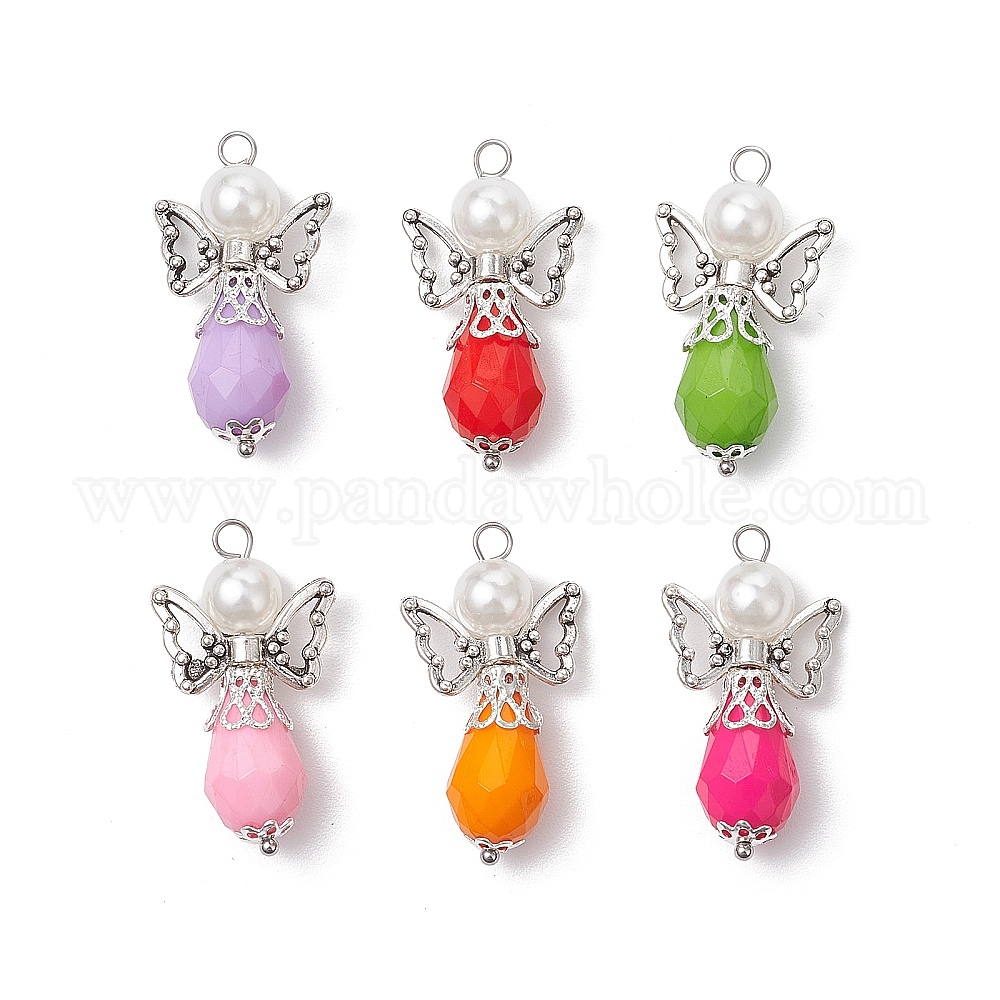 Ангел в форме капли с подвесками из АБС-пластика с имитацией жемчуга, с крыльями из сплава и фурнитурой из железа и 304 нержавеющей стали, граненые