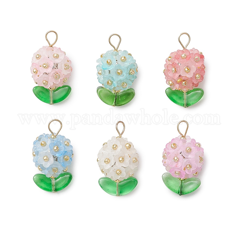 Матовые прозрачные акриловые подвески, со стеклянными бисеринами, цветок