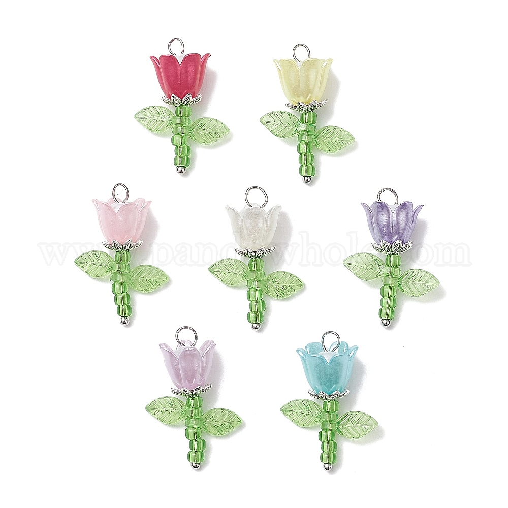 Подвески из акриловых бусин и пластиковых бусин с имитацией жемчуга и японского бисера, с латунными штифтами с шаровидной головкой и колпачками из сплава в тибетском стиле, цветок