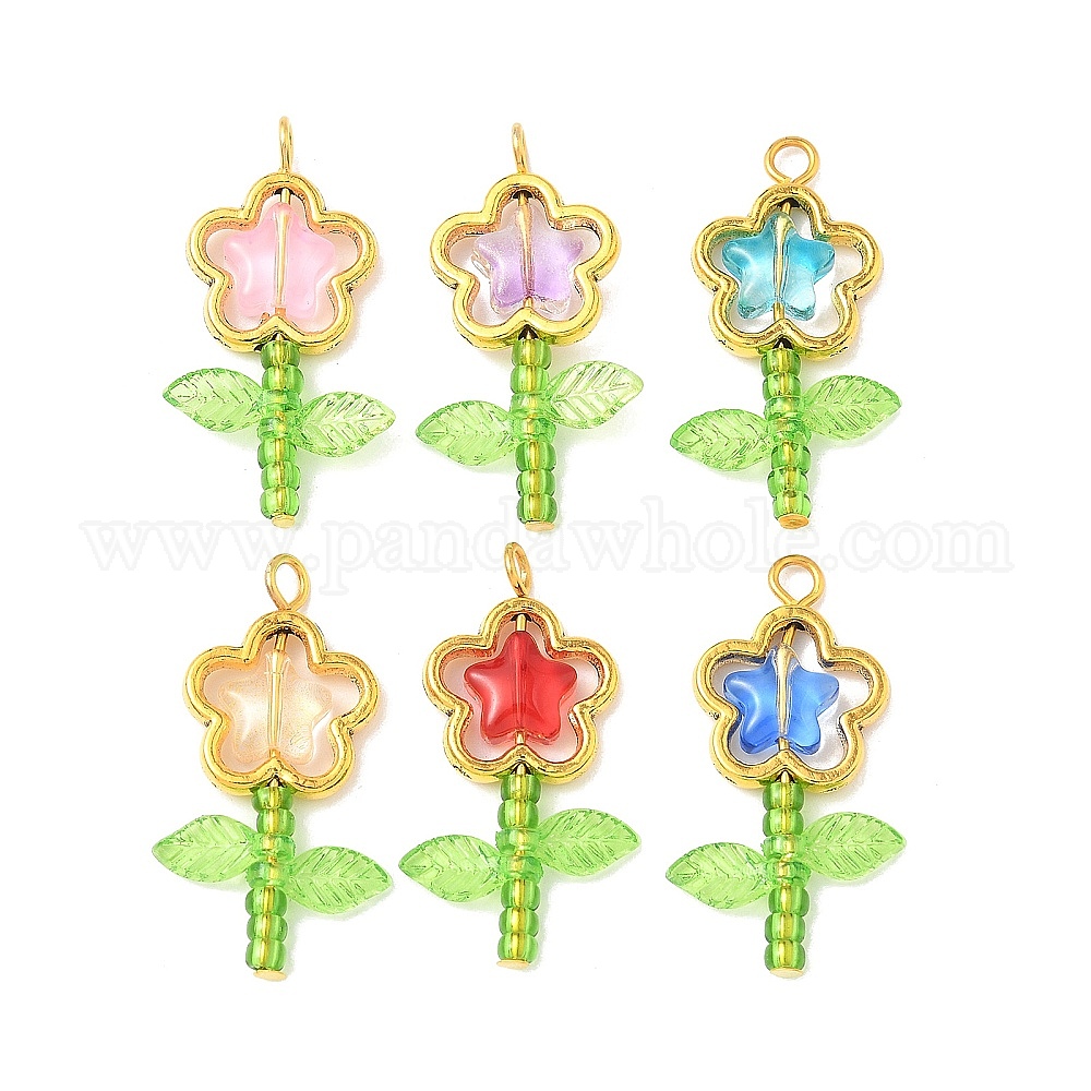 Подвески в форме цветов из акрила, с железными штифтами с плоской головкой, оправами для бусин из сплава в тибетском стиле, прозрачными стеклянными бусинами, японским бисером и прозрачными акриловыми подвесками