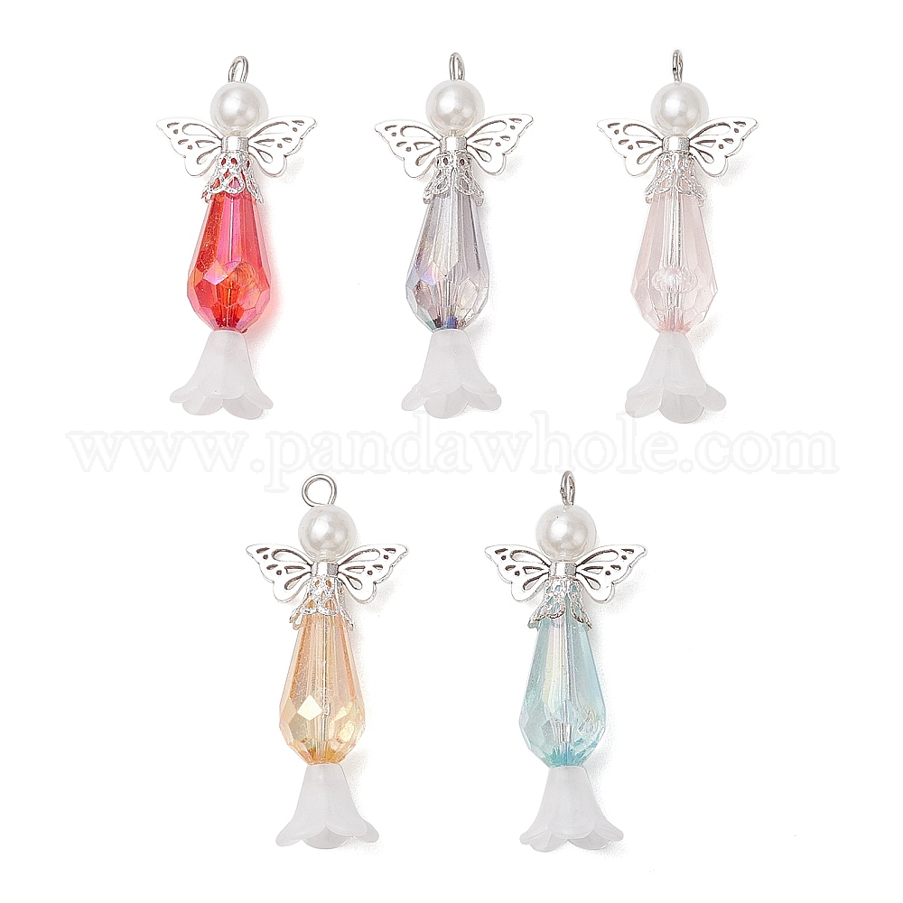 Подвески из акрила с абс-пластиком, имитирующие жемчуг, с фурнитурой железной и сплавочной, ангел