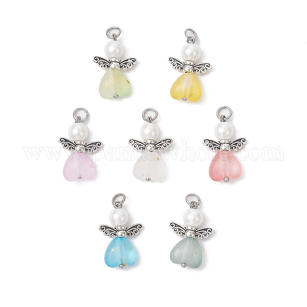 7шт. подвески из матового прозрачного акрила и стеклянного жемчуга, со сплавочной фурнитурой, Ангел с сердцем