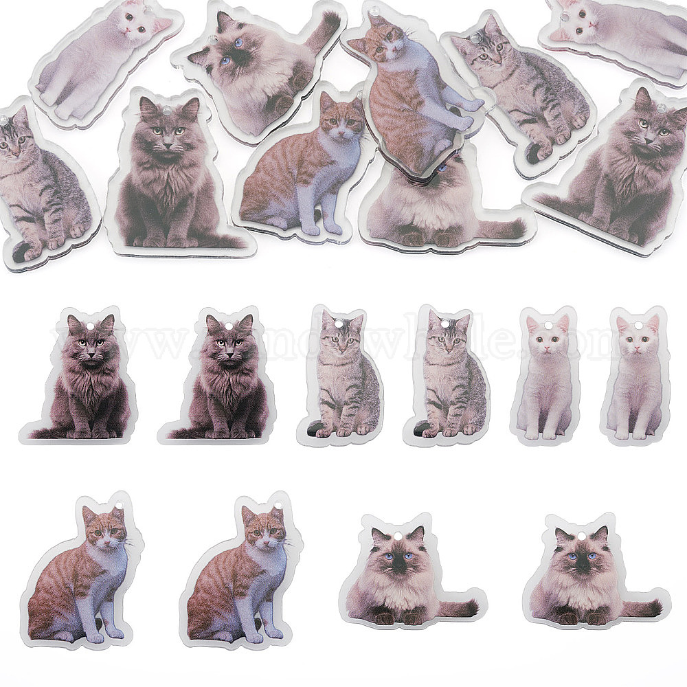 10шт 5 стили печатных акриловых подвесок, форма кошки