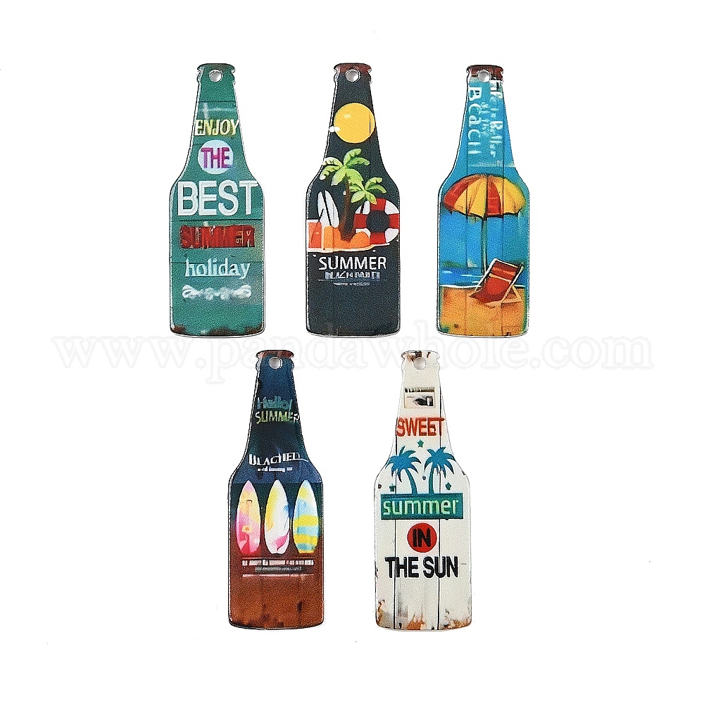 • (52) Непрозрачная лаванда Печатные акриловые подвески, бутылка пива, разноцветные, 42x14x2 мм, отверстие : 1.6 мм