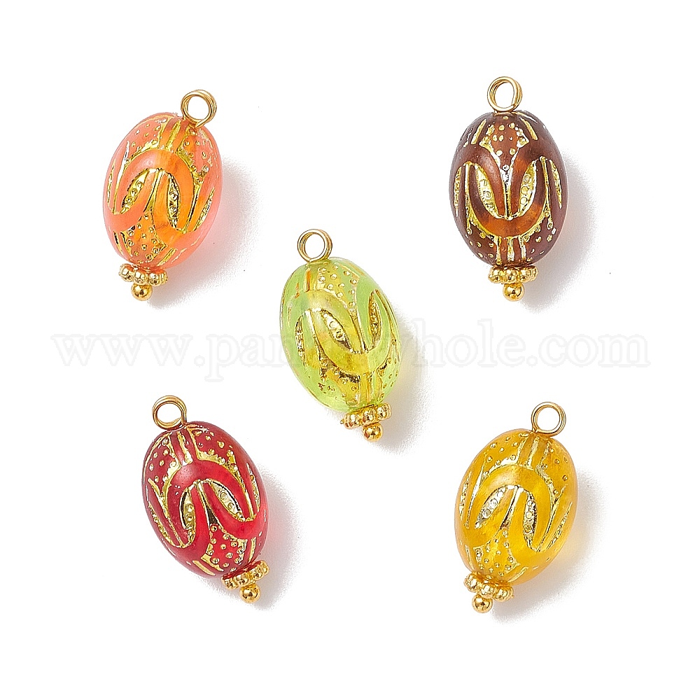 Прозрачные акриловые подвески, овальные, с латунными штифтами, золотой металл обвитыми