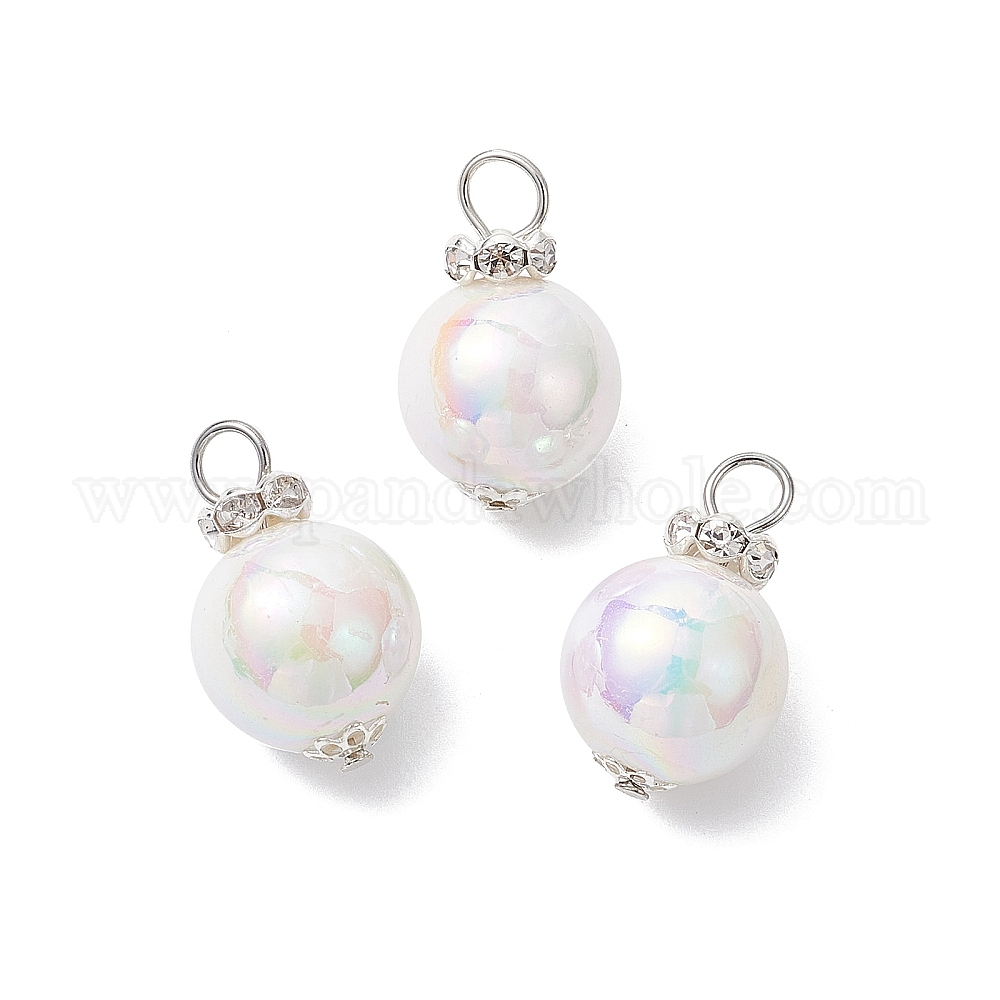 Имитация жемчуга акриловыми подвесками, круглые, с латунными бусинами-разделителями из стразов и железными штифтами с плоскими головками