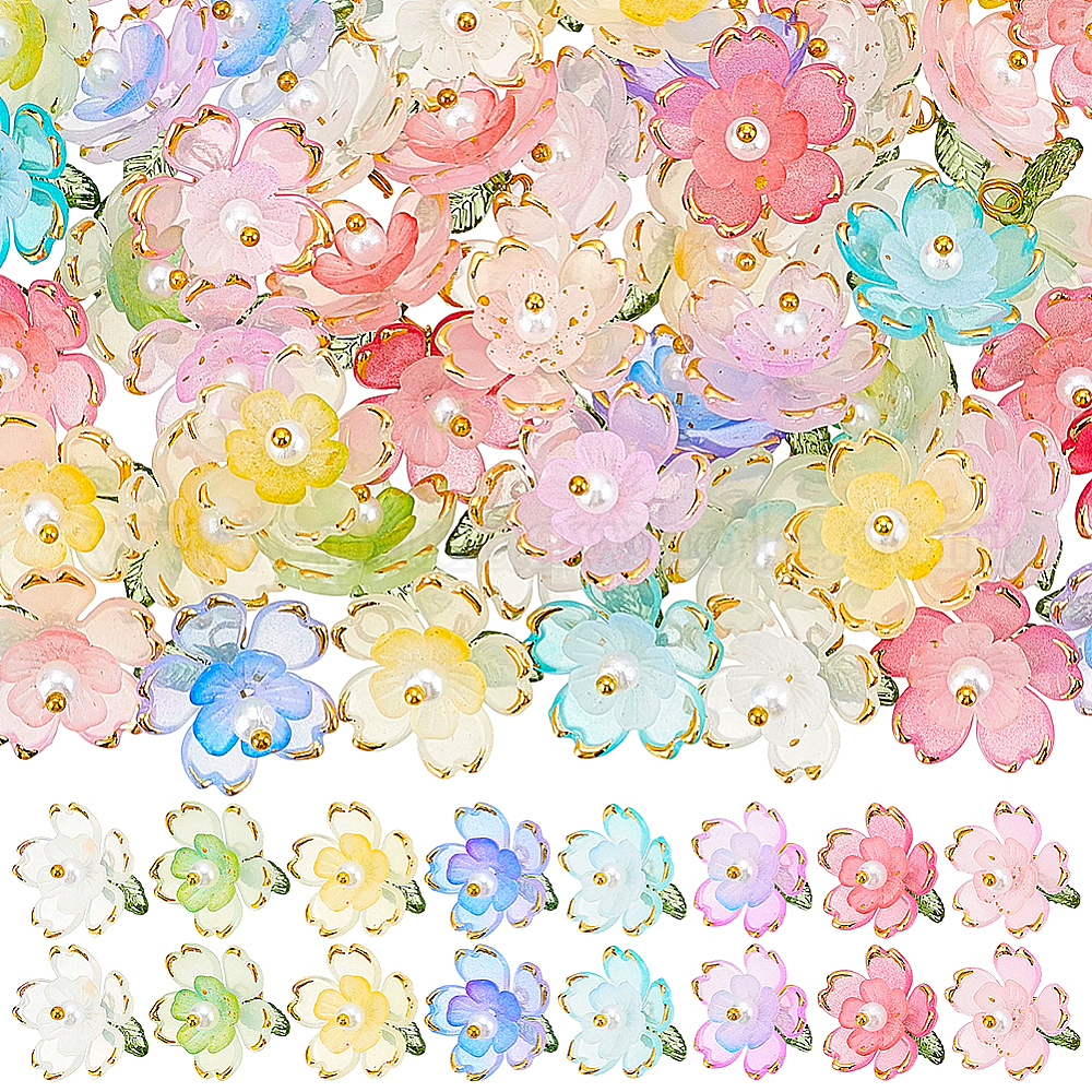 80шт. 8 цветные прозрачные акриловые подвески, с медными петлями, цветок