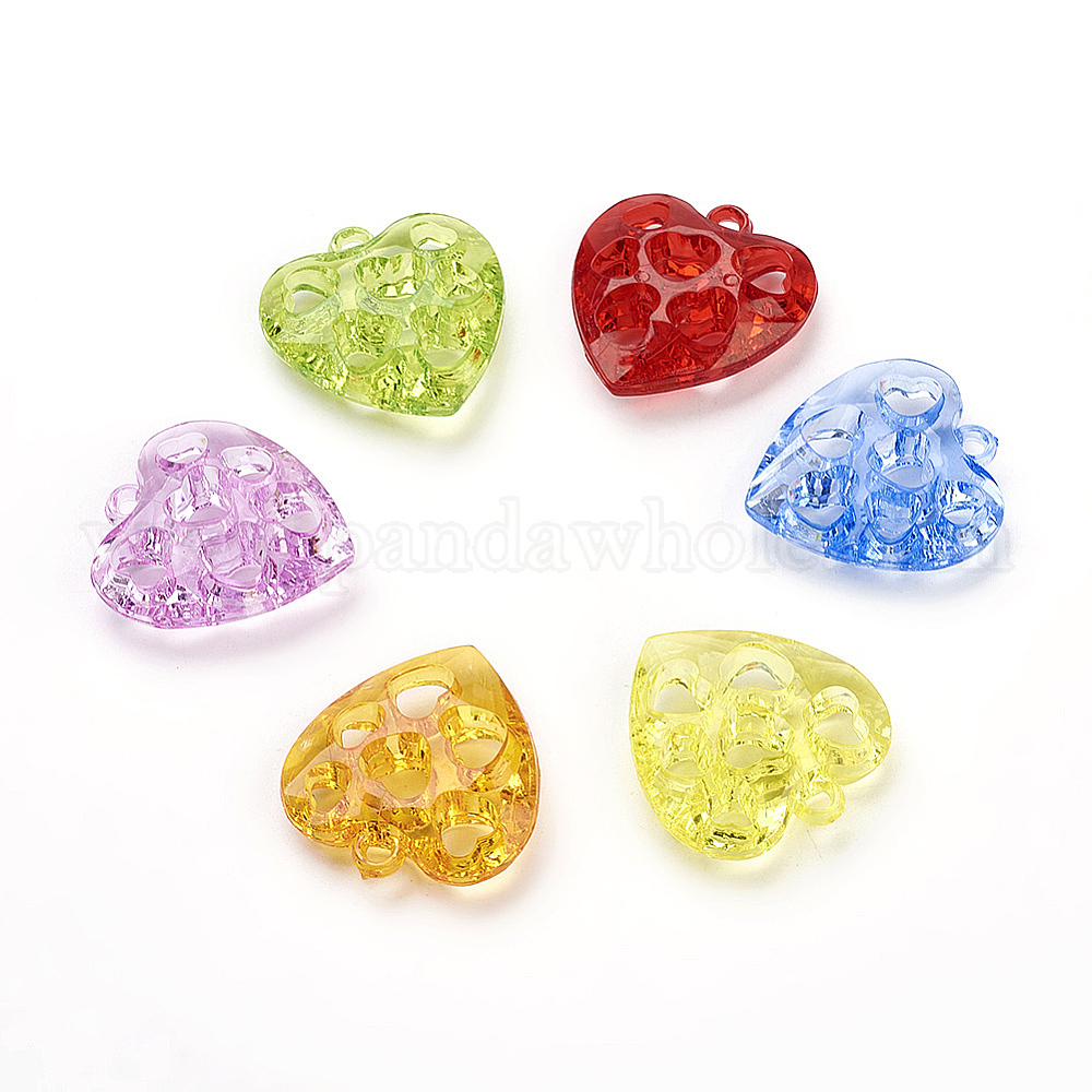 • (52) Непрозрачная лаванда Прозрачные акриловые подвески, сердце, разноцветные, 38x36x11 мм, отверстие : 3 мм, Около 110 шт / 500 г