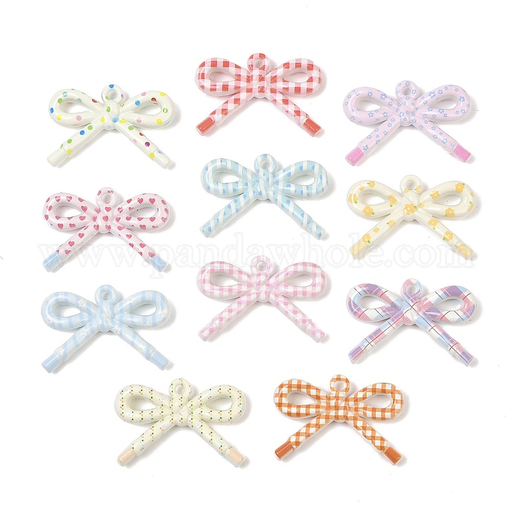 • Разноцветный Непрозрачные печатные акриловые подвески, бантом, красочный, 34x48x9 мм, отверстие : 3.3 мм