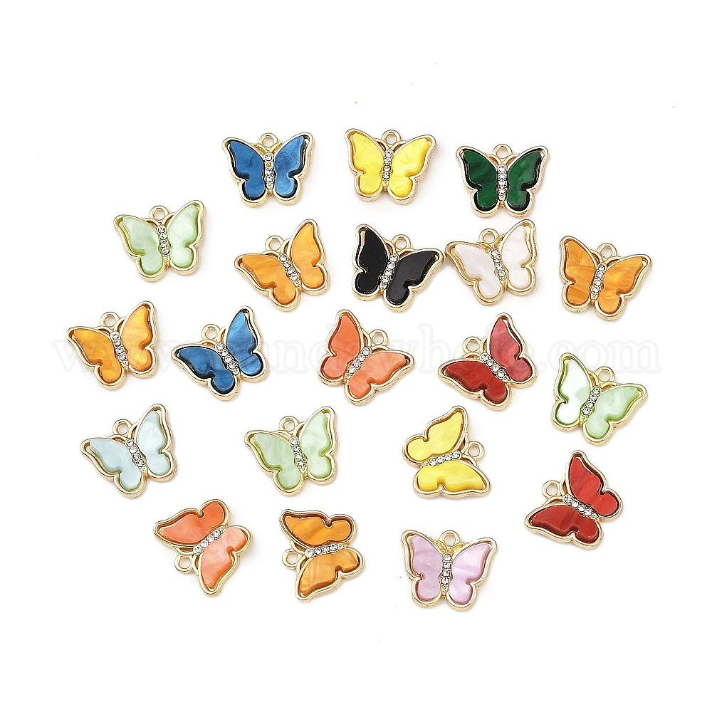Подвески из сплава, акрила и хрустальных страз, золотые, бабочка