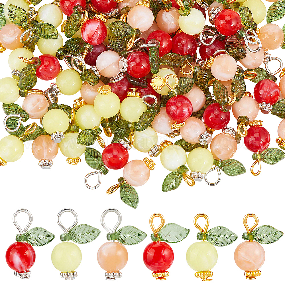 120 шт 6 стили акриловые подвески, с железными штифтами с плоской головкой, фруктовые прелести