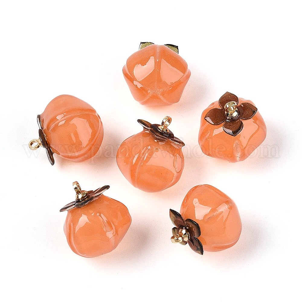 Непрозрачные акриловые подвески, хурма, с золотыми тонами латунных петель