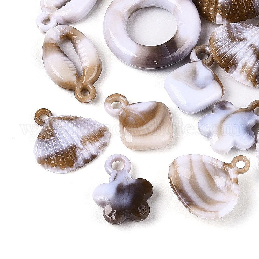 Подвески из непрозрачного акрила цвета океана, подвески в форме ракушки/ромба/круга/цветка
