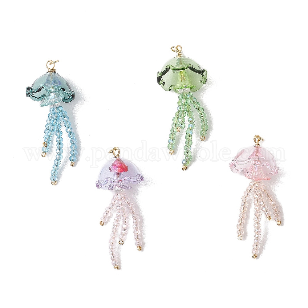 Стекло с большими акриловыми подвесками, медузы прелести, с латунной фурнитурой