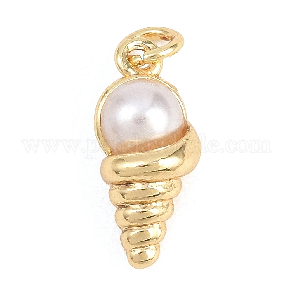 Латунные подвески, с акриловой имитация жемчуга, подвески в форме раковины, долговечный, стойки покрытие, без свинца и без кадмия (03BHAJ)