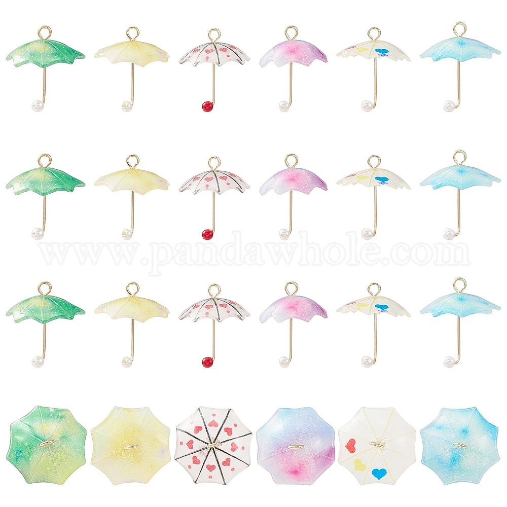 Акриловые подвески, с позолоченными латунными петлями и искусственным жемчугом из абс-пластика, форма зонтика