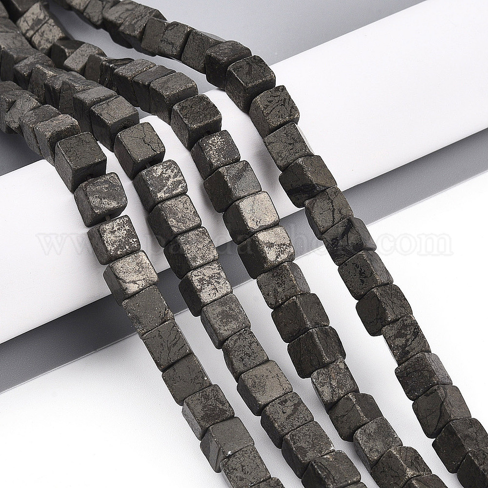 • Пирит Природного пирита бисер нитей, кубические, 6~6.5x6~6.5x6~6.5 мм, отверстие : 0.9~1 мм, около 57~63 шт / нитка, 14.53~15.35'' (36.9~39 см)