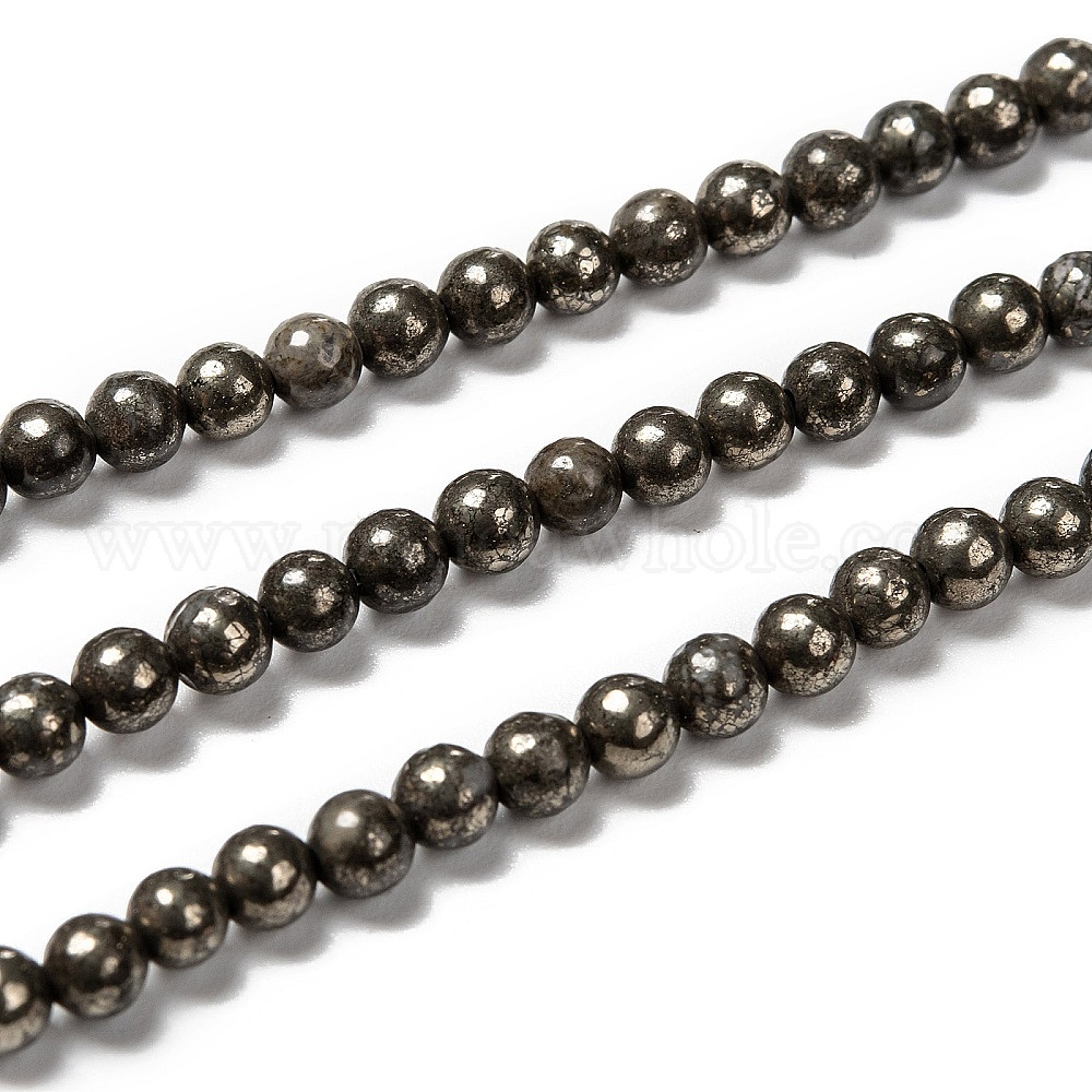 • Темный Хаки Природного пирита бисер нитей, круглые, 4 мм, отверстие : 0.8 мм, около 97~100 шт / нитка, 15 дюйм