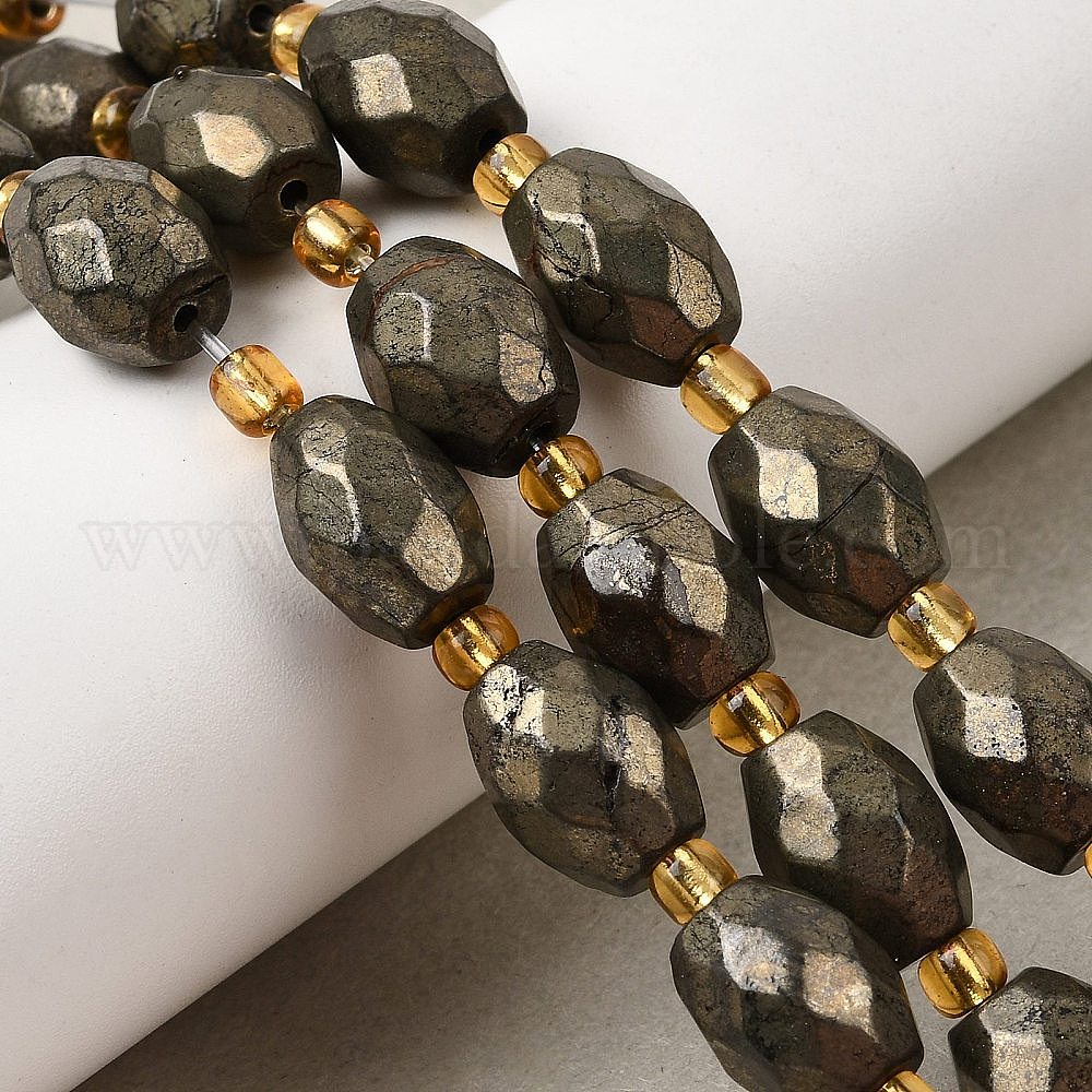 • Пирит Природного пирита бисер нитей, с бисером, граненые, овальные, 12x9 мм, отверстие : 1 мм, около 13 шт / нитка, 7.68''~7.87'' (19.5~20 см)