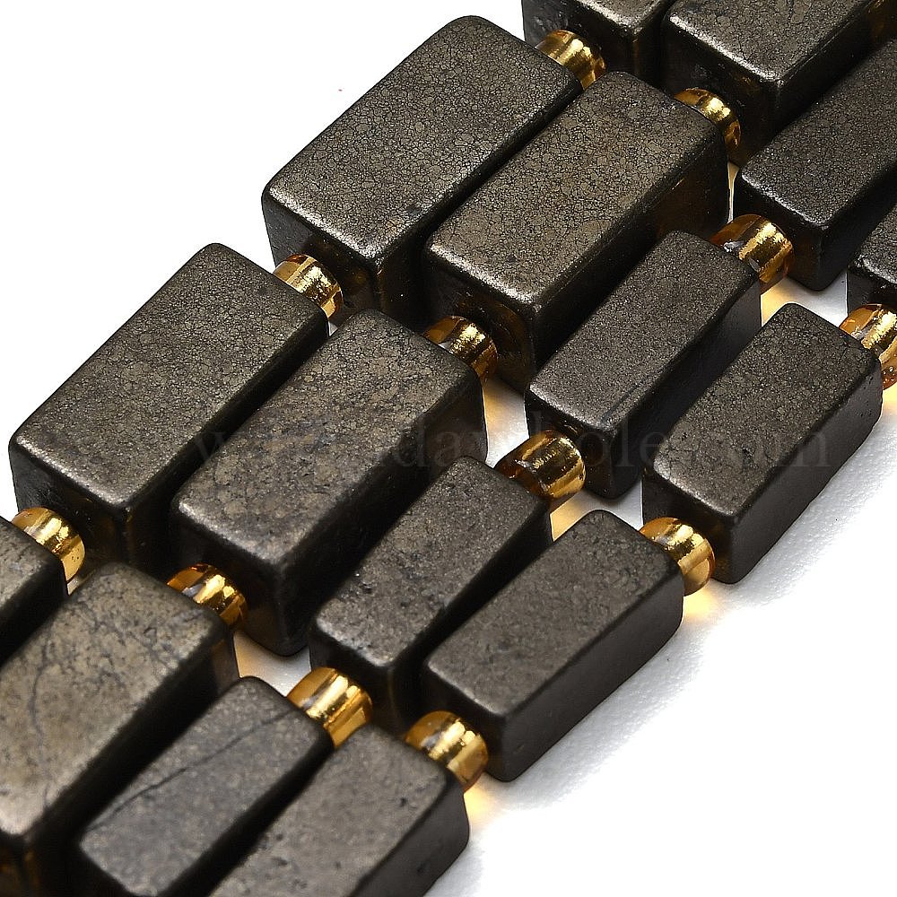 Нити из бусин из натурального золотого пирита/золотого пирита, кубоид, с бисером