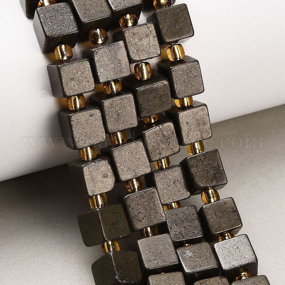 Нити из бусин из натурального золотого пирита/золотого пирита, кубические, с бисером