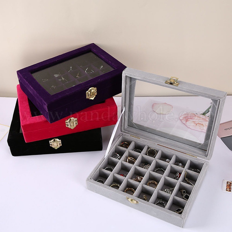Бархат с деревянной коробкой для ювелирных изделий, для перстней, хранение серег, прямоугольные