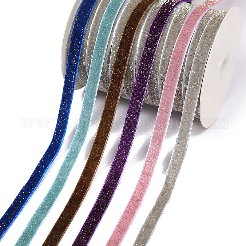 • Фиолетовый Односторонние бархатные ленты с блестящей пудрой, аксессуары для одежды, фиолетовые, 3/8 дюйм (10 мм), 100 ярдов / ролл