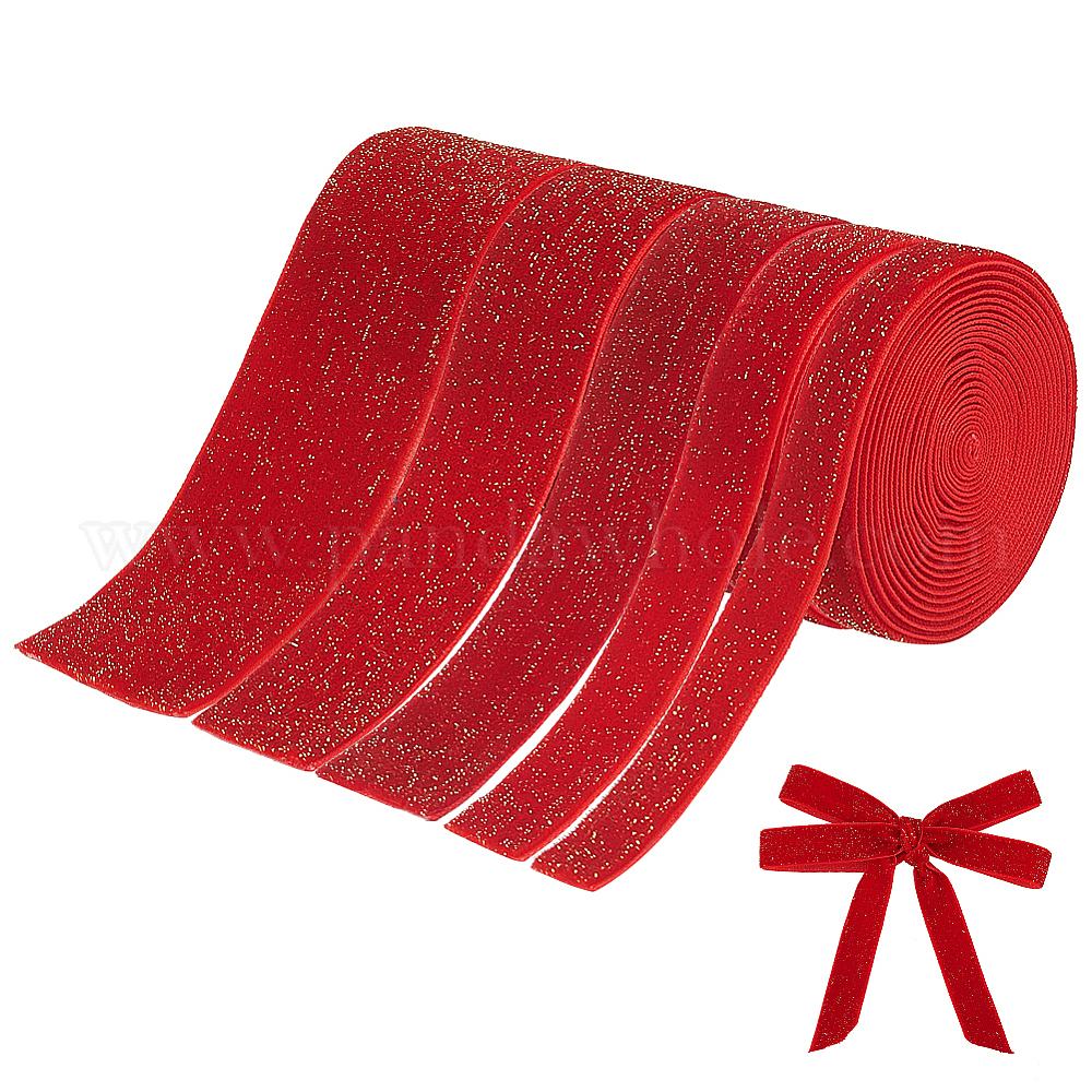 • Красный 5 рулоны 5 стили сверкающие односторонние бархатные ленты, полиэфирная лента для новогоднего украшения дома, Подарочная упаковка, красные, 3/8~1-1/2 дюйм (10~39 мм), о 2 ярдов / крен, 1 рулон / стиль
