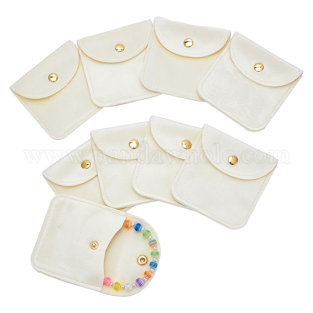 • Кукурузный Шелк Бархатные мешочки для украшений с клапанами, сумка-конверт с кнопкой для сережек, Браслеты, ожерелья упаковка, квадратный, цвет колоса кукурузы, 8x7.9 см