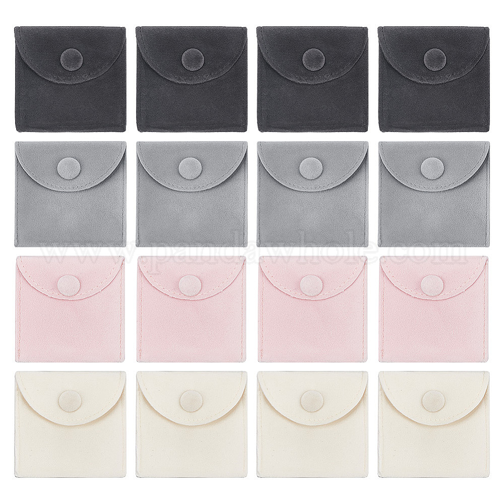 20шт 4 цвета квадратные бархатные мешочки для ювелирных изделий, мешочки для хранения украшений с кнопкой