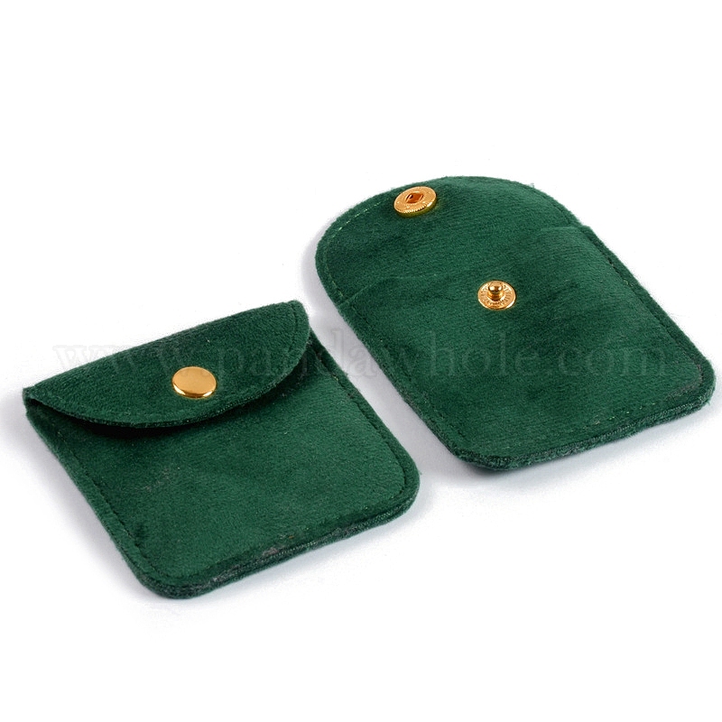 • Темно-Зеленый Бархатные мешочки для хранения украшений с кнопкой, для сережек, Кольца, , прямоугольные, темно-зеленый, 11.8x12 см