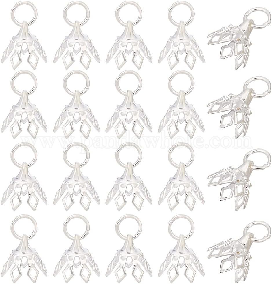 • Серебро Латунная филигранная бусина, 7-лепесток, цветок, серебряные, 8x8 мм, отверстие : 3 мм, 60 шт / коробка