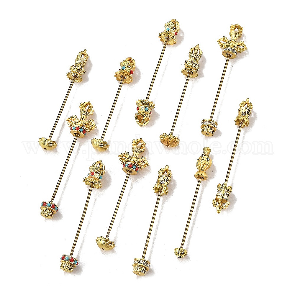 Заготовки для подвесок в форме лотоса из латуни с возможностью крепления бусинами, винтовые штифты для бусин Дзи, горный хрусталь и синтетической бирюзы