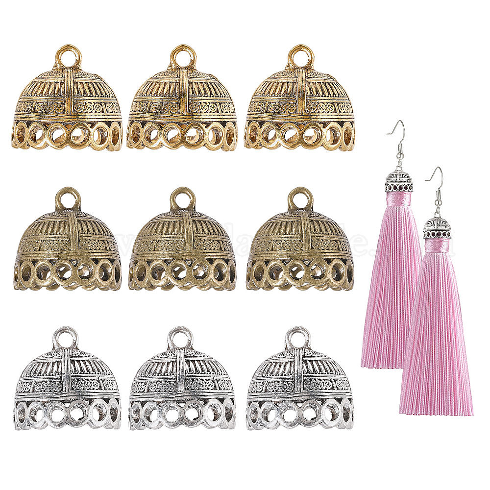9 шт. 3 цвета тибетский стиль сплав подвеска дужка, кисточка крышка под залог, колонка