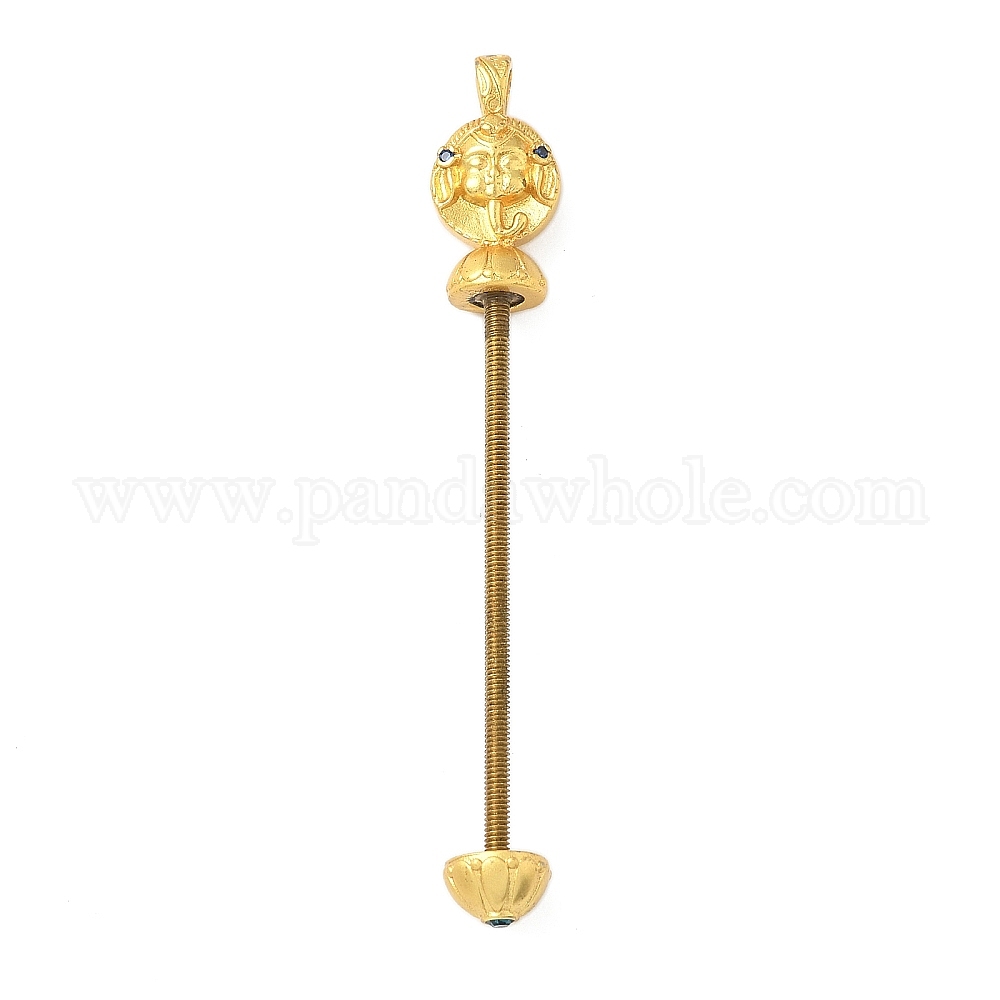 • Матовый Золотой Цвет Латунные заготовки для подвесок с бусинами, долговечный, винтовые штифты для бусин Дзи, со стразами, матовый золотой цвет, 70.5x10x8 мм, отверстие : 3.5x2.5 мм